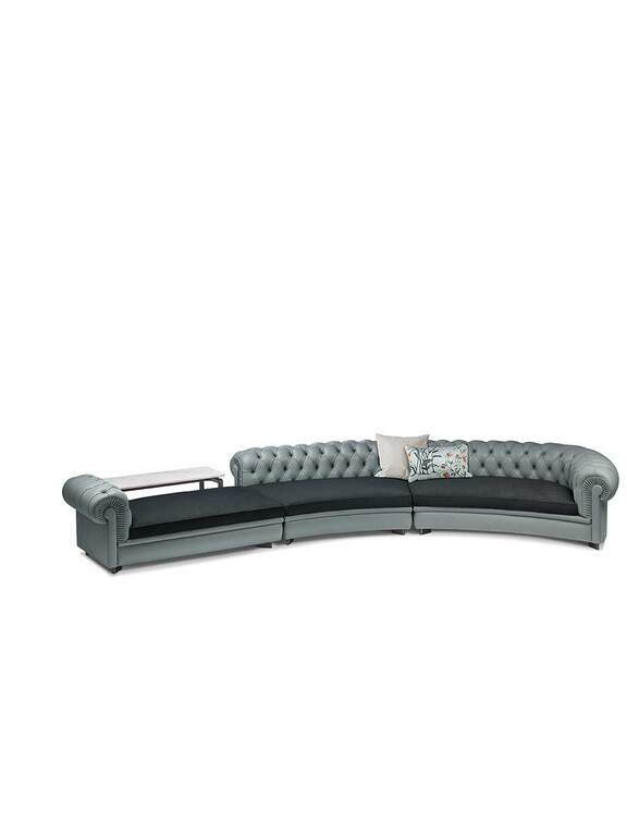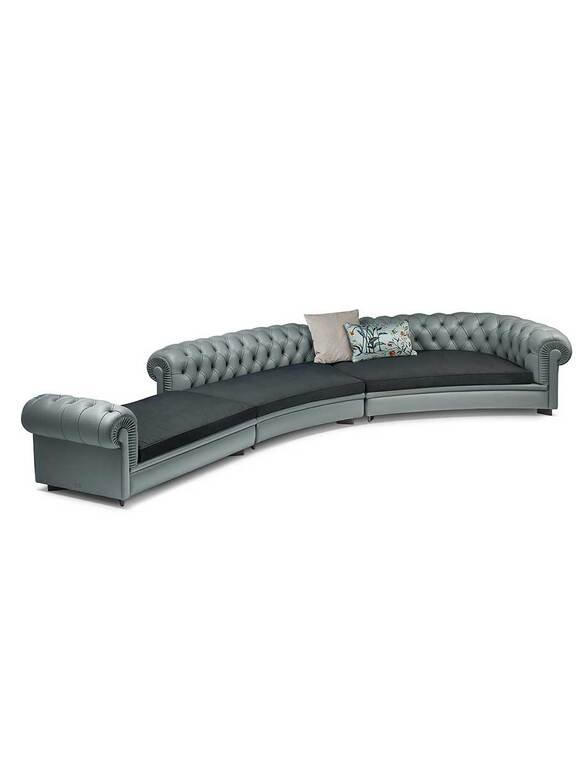 Ce canapé design haut de gamme se décline en un système modulaire complet incluant chaise longue, fauteuil sans bras, pouf, canapés angulaires terminaux et versions courbes avec ou sans accoudoirs. Cette polyvalence permet des combinaisons infinies – serpentins sinueux ou associations avec solutions linéaires – créant des configurations sur mesure pour chaque espace. Chaque élément conserve la présence sculpturale caractéristique du Chester original tout en offrant une légèreté adaptée aux intérieurs contemporains.