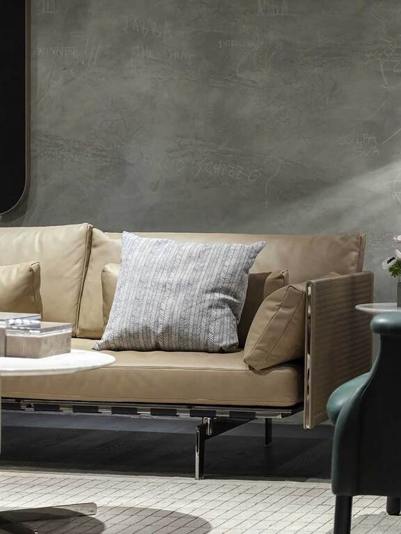 Ce canapé design haut de gamme se décline en version entièrement gainée de cuir Pelle Frau® ou en combinaison avec la vaste gamme de tissus Poltrona Frau, offrant une richesse sensorielle exceptionnelle. Chaque détail témoigne d’un savoir-faire artisanal raffiné et d’une attention méticuleuse aux finitions. La version associant cuir et tissu ou velours crée particulièrement une expérience tactile et visuelle remarquable.