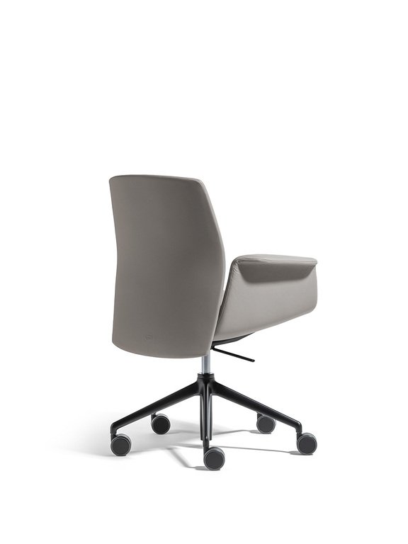 La chaise Downtown Conference 360° possède une base pivotante à cinq branches en acier chromé et un revêtement en cuir Pelle Frau® ou tissu, garantissant robustesse et élégance. Sa conception sophistiquée permet à l’utilisateur de bénéficier d’une rotation fluide, tout en assurant un maintien optimal et une posture naturelle. Le design ergonomique et les finitions artisanales en font un choix parfait pour les cadres et dirigeants qui recherchent à la fois confort et raffinement.