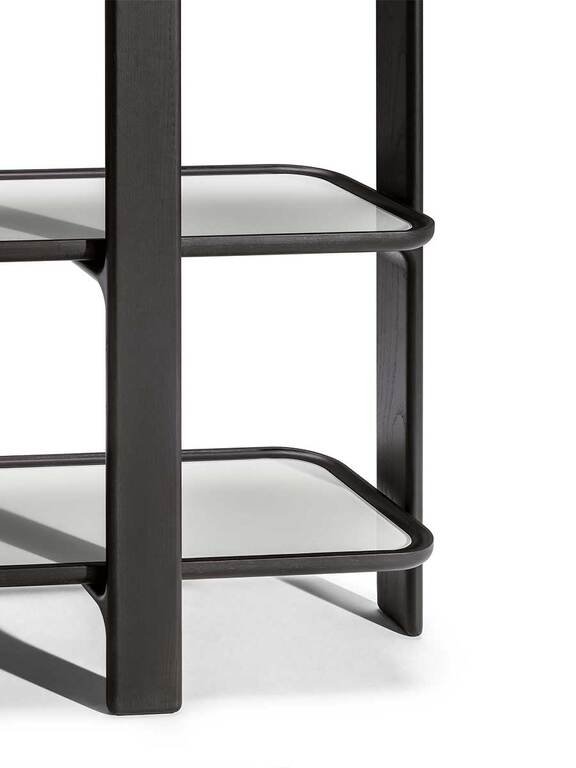 Cette bibliothèque design haut de gamme se distingue par sa composition modulaire innovante, disponible en formats quatre ou deux étagères pour s’adapter parfaitement à tous les espaces de vie. La structure en frêne massif, proposée dans différentes finitions raffinées, abrite un fond d’étagères en multiplis de peuplier plaqué frêne harmonieusement coordonné. Les éléments métalliques avec finition bronze fumé apportent une touche de luxe contemporain et de raffinement à l’ensemble, créant un contraste élégant avec la chaleur du bois massif.