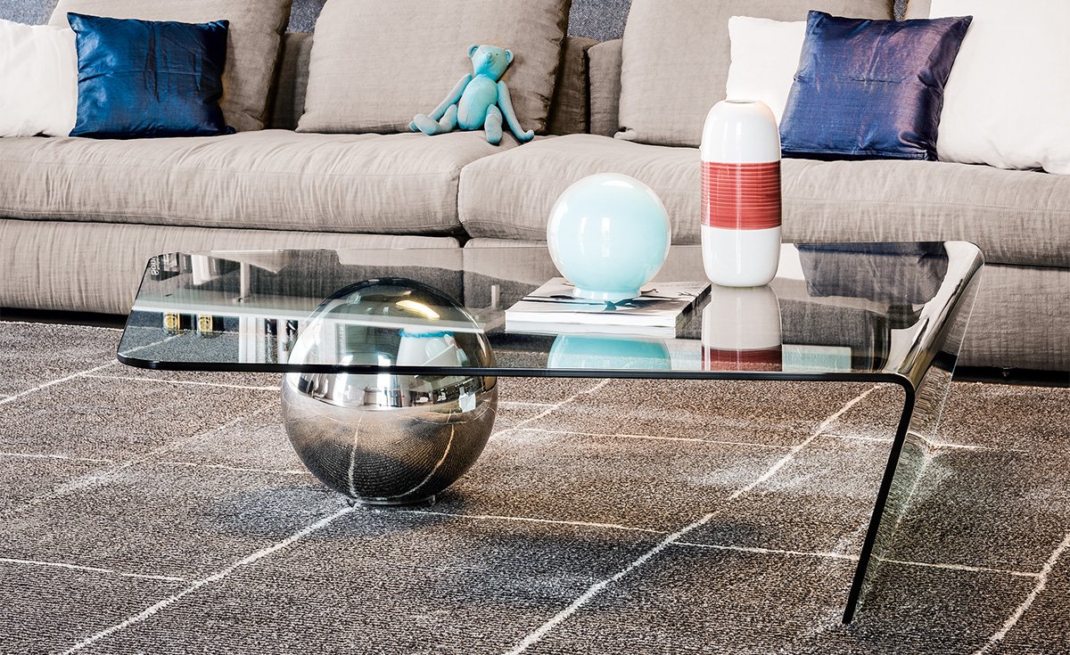 La Globe par Cattelan Italia est une table basse design haut de gamme au caractère sculptural affirmé, créée par Giorgio Cattelan en 1989. Cette table basse en verre courbé complète un salon contemporain avec un style et une élégance intemporels. Son plateau aux formes irrégulières et aux coins arrondis repose sur deux supports distincts : l’un en verre, formant une pièce unique avec le plateau transparent courbé, l’autre constitué d’une sphère en acier brillant ou en travertin, évoquant un globe terrestre comme son nom le suggère.