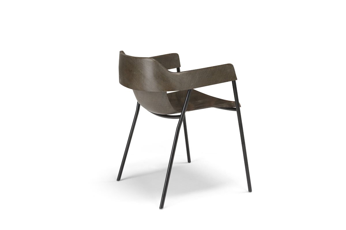 Tel un tissu souple, la fine feuille de composite se déploie et se plie délicatement autour d’une structure en métal élancé. Ce geste fluide, presque sculptural, donne naissance à une assise enveloppante et généreuse. Le contraste subtil entre les matériaux — la douceur organique du lin et la rigueur métallique — confère au fauteuil NIL une présence à la fois discrète et sophistiquée.