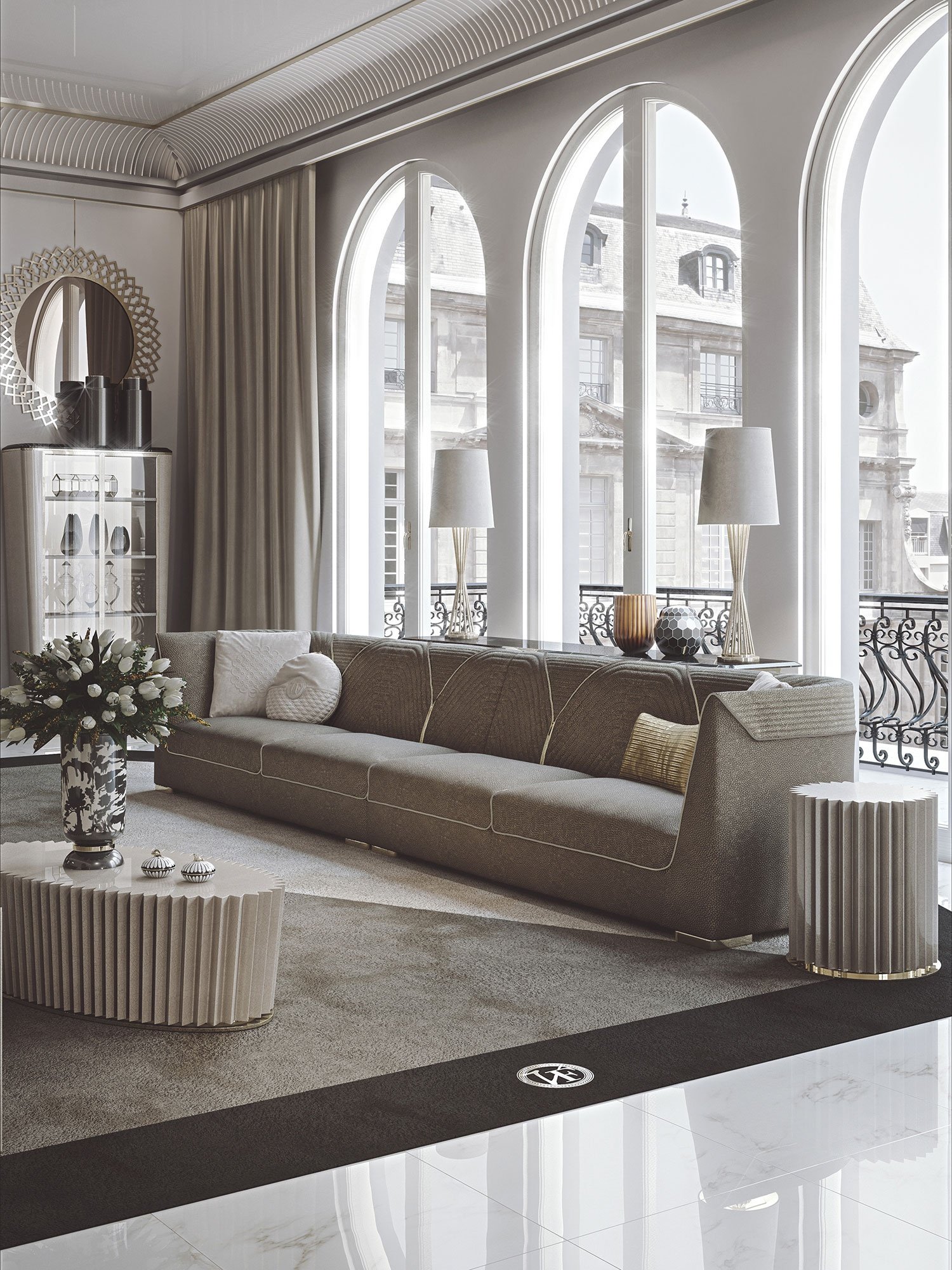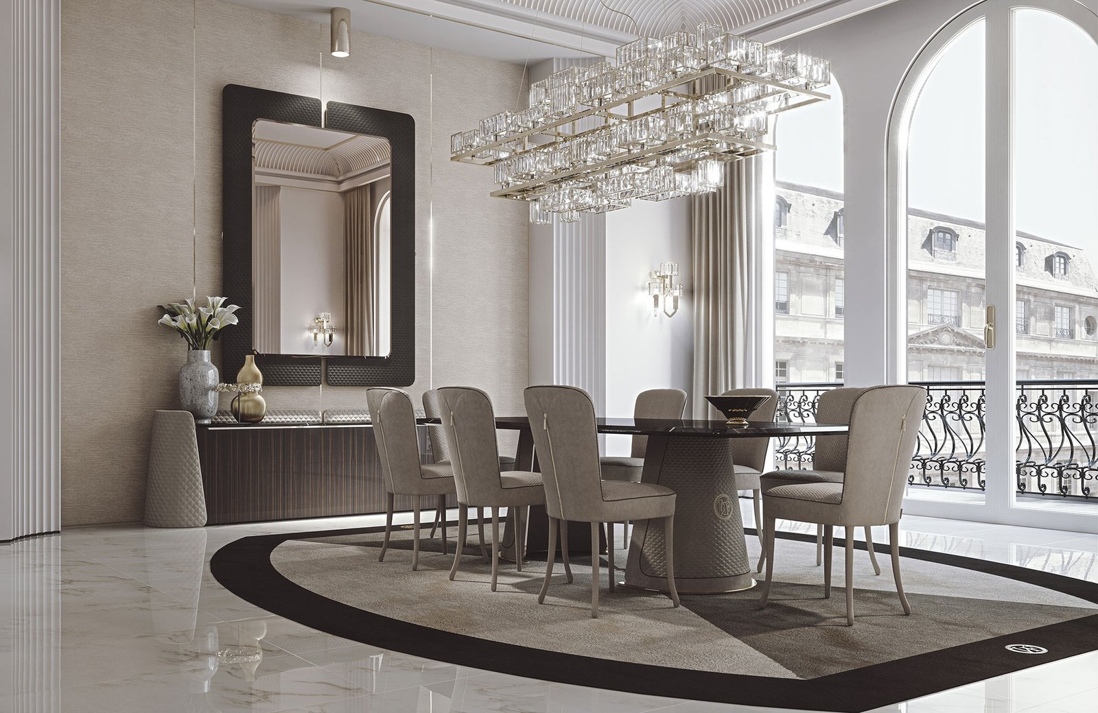 Le Patrizi tapis est pensé pour devenir un véritable protagoniste visuel, capable d’habiller une pièce sans l’alourdir. Il incarne le style signé Vittoria Frigerio, où la précision et l’harmonie priment. Disponible chez D-Style Interior.