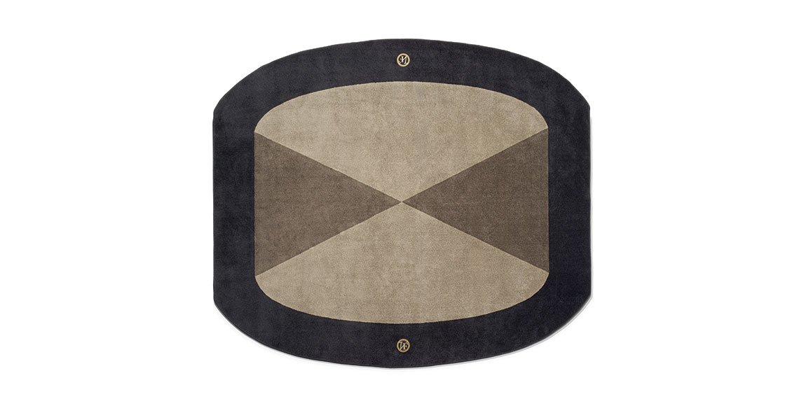 Un détail fort du modèle est la présence du logo VF, appliqué comme un petit bijou en métal Gold Chrome. À la demande, il est également possible de choisir une finition Burnished ou de retirer complètement le logo pour un rendu plus discret. Les teintes Silk 12 Ecru, Silk 18 Beige, Silk 44 Dove-grey et Silk 45 Black permettent d’adapter le tapis à différents styles d’intérieur, du plus minimaliste au plus luxueux.