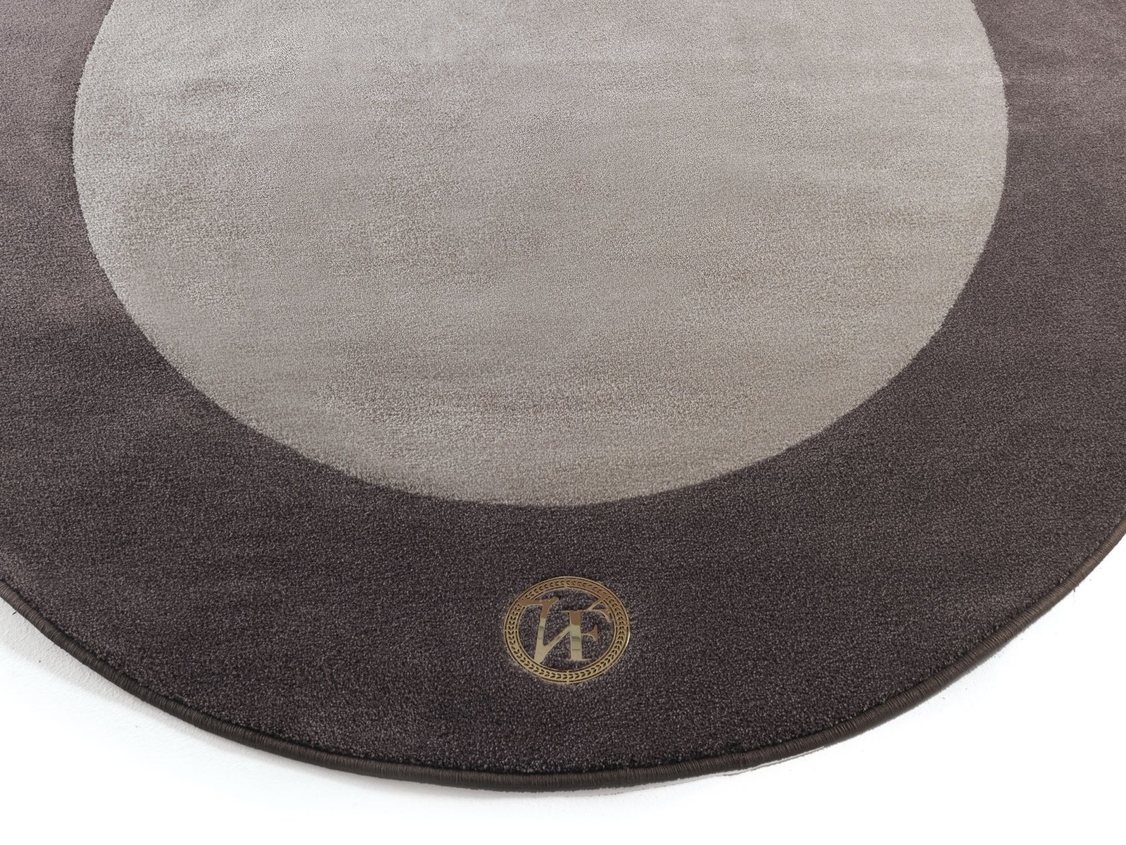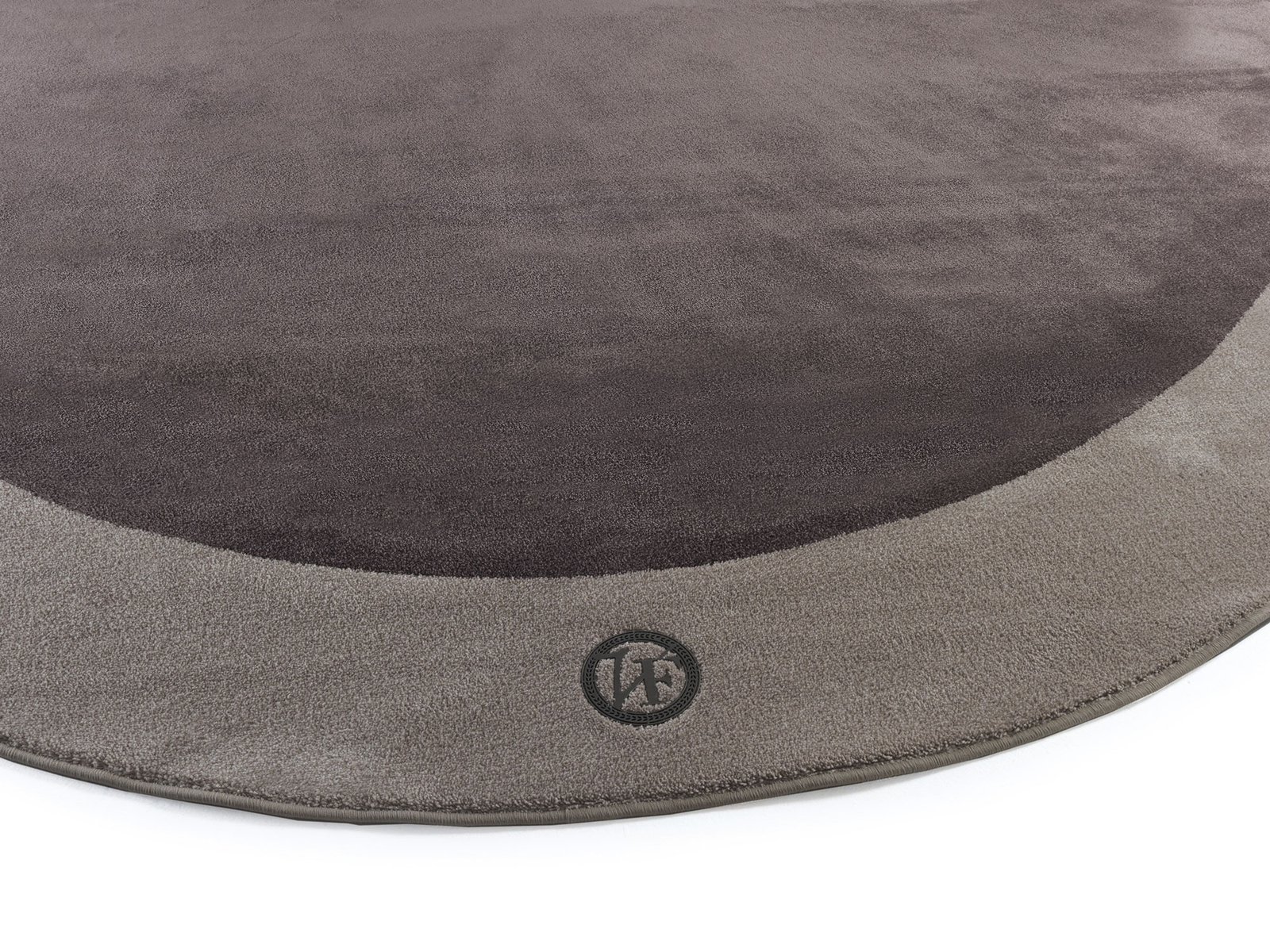 Ce tapis se distingue aussi par son logo VF en métal Gold Chrome, intégré comme un petit élément précieux. À la demande, il peut être réalisé avec un logo en finition Burnished ou sans logo pour un rendu encore plus discret. La palette de couleurs, composée des teintes Silk 12 Ecru, Silk 18 Beige, Silk 44 Dove-grey et Silk 45 Black, s’adapte aussi bien aux intérieurs lumineux qu’aux ambiances plus sombres.