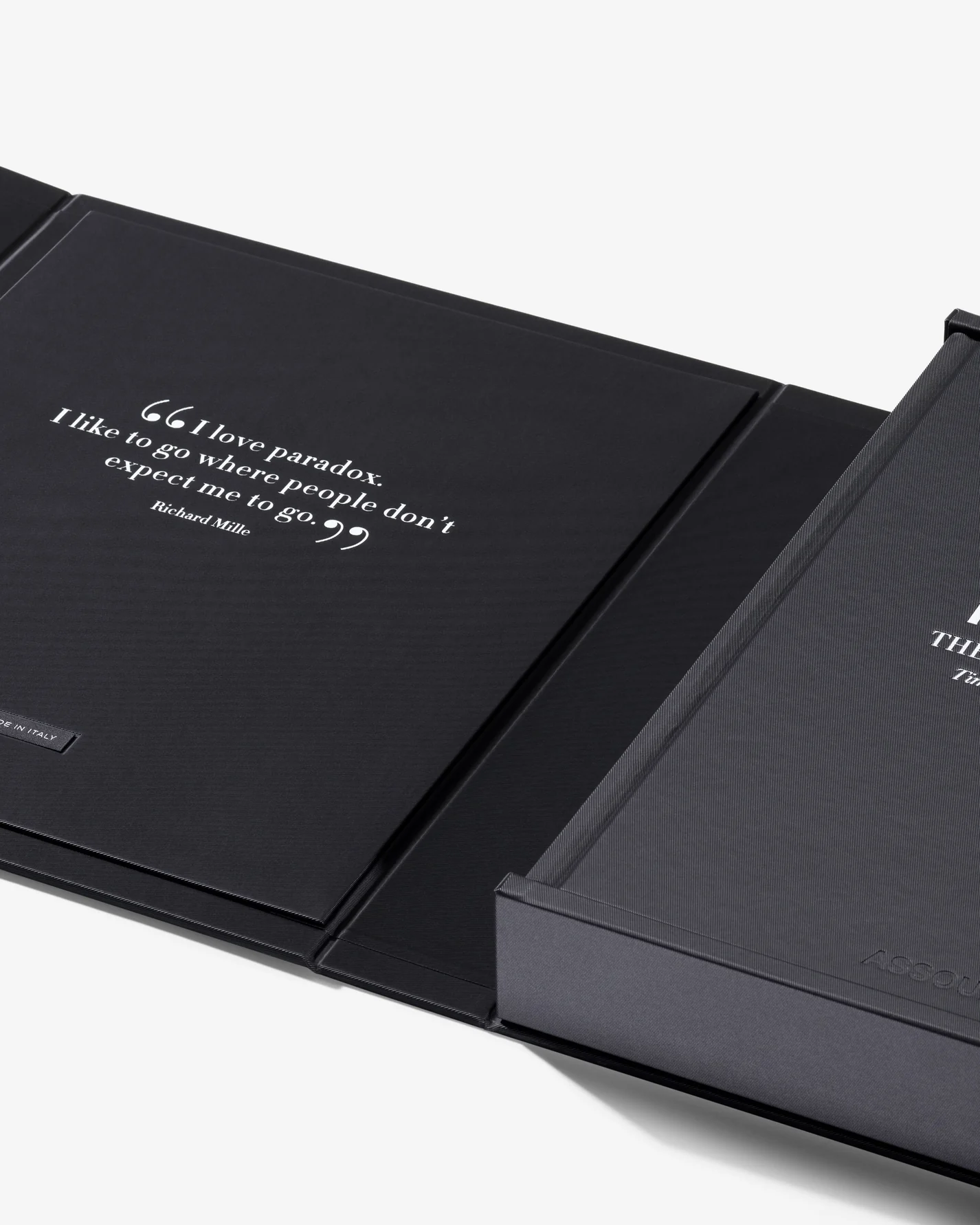 Ce livre design haut de gamme se présente dans un écrin luxueux avec plaque métallique, abritant un volume artisanal de 224 pages et près de 200 illustrations. Les dimensions imposantes (41 x 48 cm) et le poids significatif (9,28 kg) de cet ouvrage en font une pièce maîtresse qui s’impose dans tout intérieur raffiné. Il explore la philosophie unique de Richard Mille, où l’art rencontre la science, le design épouse l’ingénierie, et la tradition dialogue avec l’innovation.