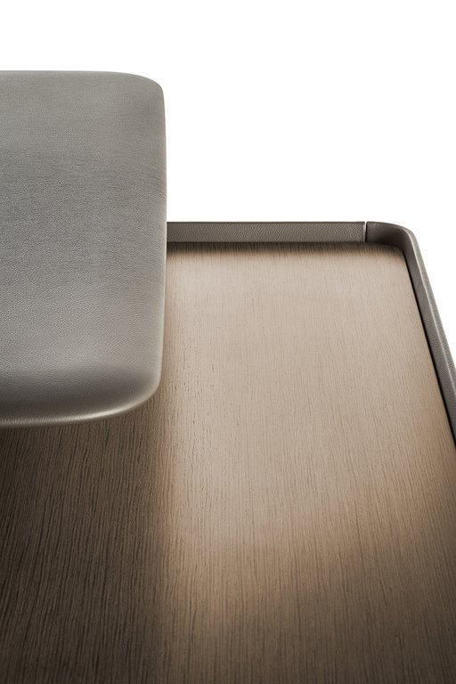 Le plateau, aux bords arrondis et sans arêtes vives, favorise une posture détendue et une atmosphère de dialogue. Disponible en plusieurs tailles, le Trust Regular Desk combine une forme rectangulaire épurée à des finitions raffinées : surface en Techno Wood ou entièrement revêtue de cuir Pelle Frau®. Les pieds, également gainés de cuir ou en Techno Wood, dissimulent un passage intégré pour le câblage, garantissant un espace de travail harmonieux et ordonné.